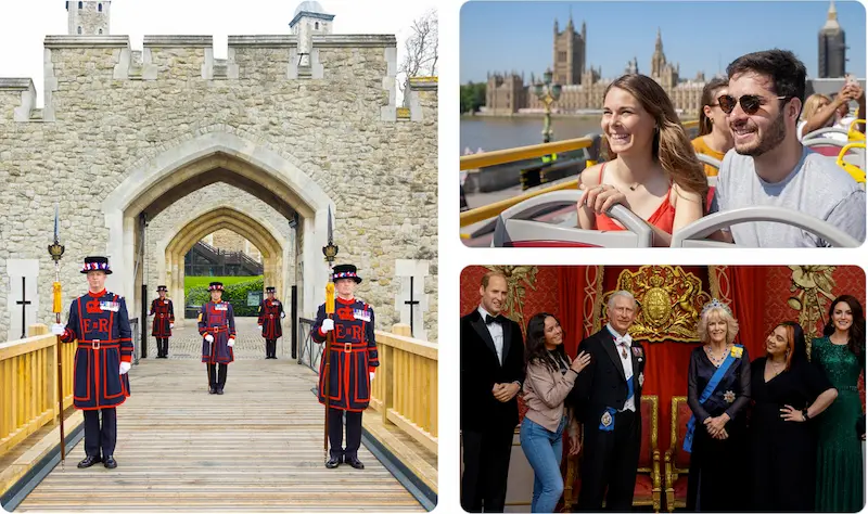 See the best of London in one day with this great value Package. Visit Madame Tussauds and rub shoulders with lifelike wax figures of your favourite celebrities, historical figures, and sporting legends. Hop on a hop-on, hop-off bus tour and see all the other top landmarks, including Buckingham Palace, Big Ben, and Tower Bridge. Finally, visit the Tower of London and learn about its turbulent history as a royal palace, prison, and fortress. Finish your day with a visit to Tower Bridge and admire its stunning architecture.