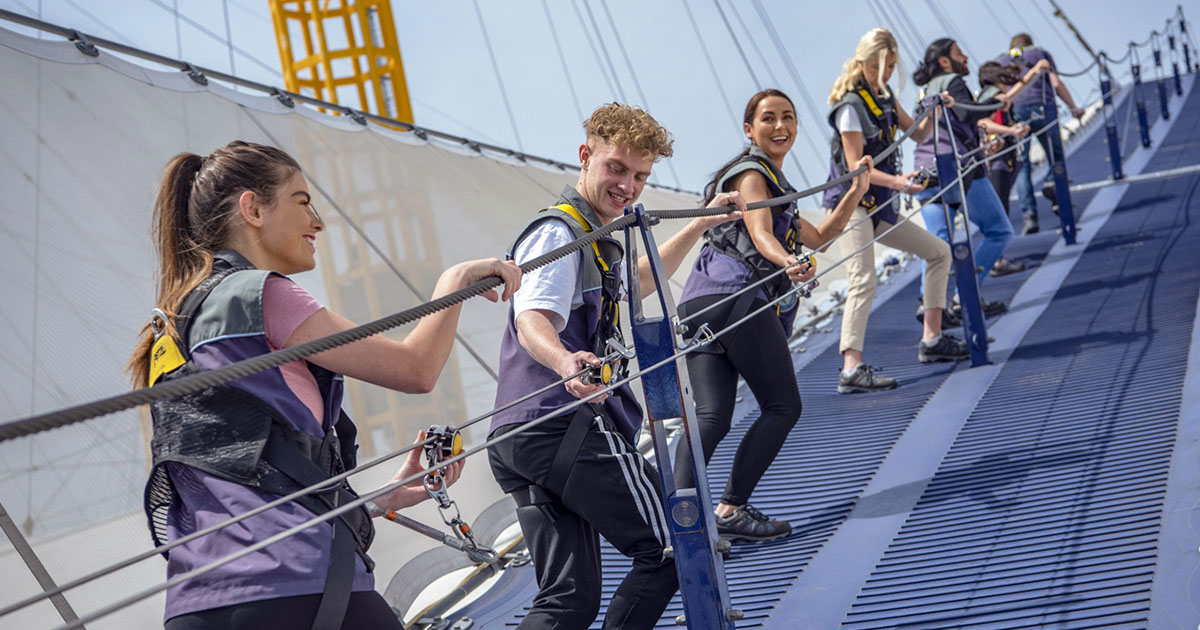- Up at The O2 Daytime Climb experience, providing an adrenaline-pumping ascent to the top of the O2 Arena.